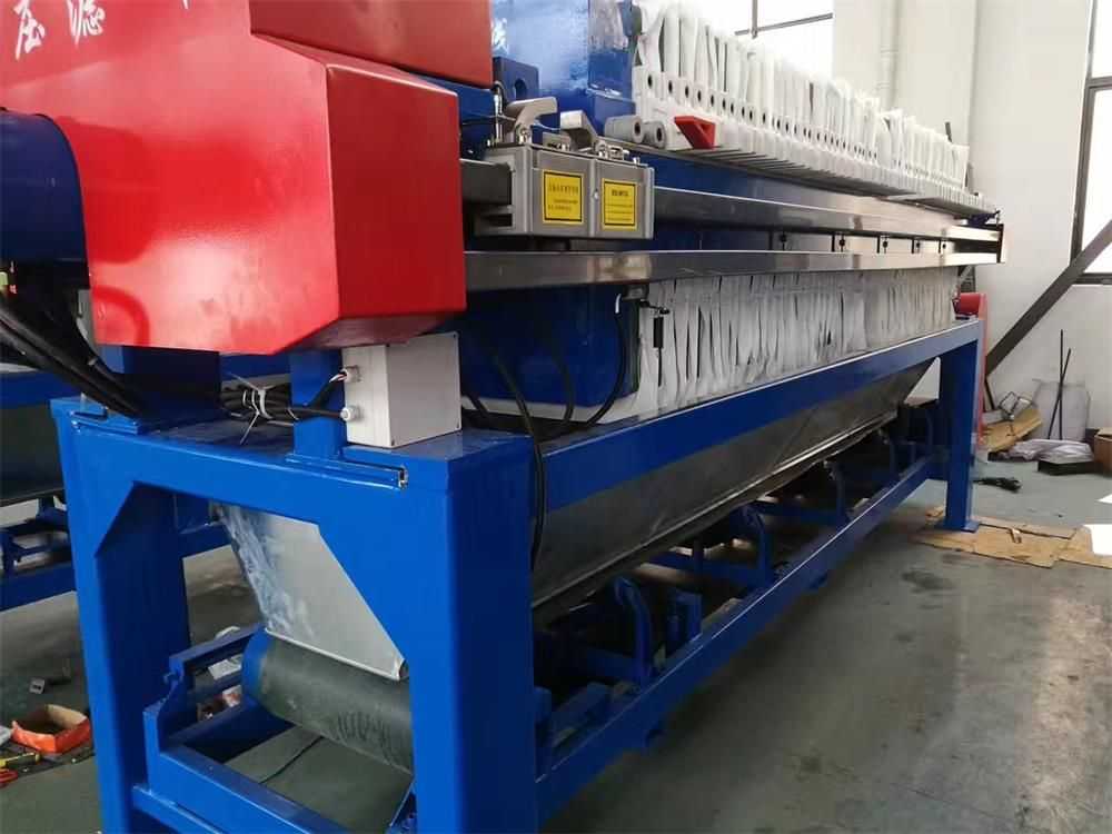 隔膜壓濾機(jī)和常規(guī)箱式壓濾機(jī)的主要區(qū)別在于,在濾板的兩側(cè)都增加了兩個彈性膜(復(fù)合橡膠膜是一個整體式膜。在操作期間,當(dāng)進(jìn)料完成時,將高壓流體介質(zhì)注入膜中,并使整個膜膨脹以過濾濾餅,以進(jìn)一步使濾餅脫水,這是壓力過濾。在隔膜壓濾機(jī)運(yùn)行期間,液壓系統(tǒng)使用液壓油作為壓力載體來傳遞內(nèi)部壓力。